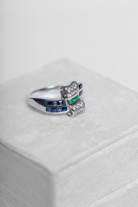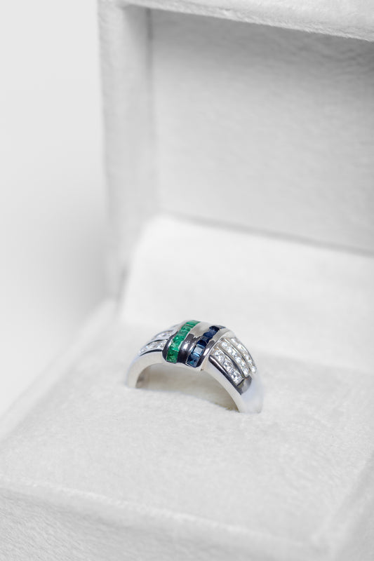 Blue Sapphire and Emerald Ring