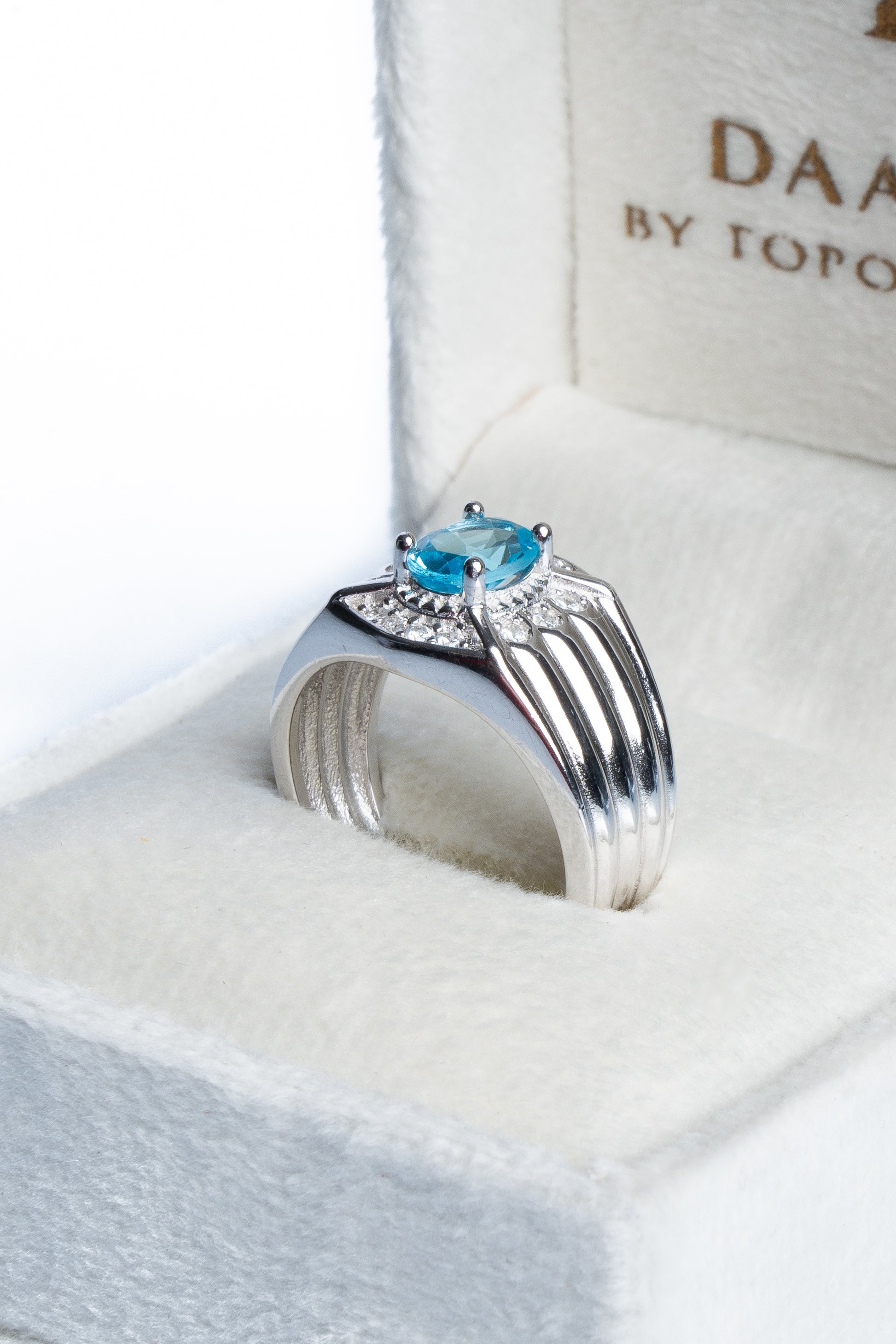 Make a bold statement with this men's sterling silver blue topaz ring. Crafted from high-quality 925 sterling silver, this men's ring features a stunning oval-cut natural blue topaz at its centre, radiating a vivid ocean-blue hue that symbolizes strength and clarity. This sterling silver men's ring is tarnish-resistant and built to last, making it an ideal gift for men for birthdays, anniversaries, engagements, or as a unique men's promise ring.
