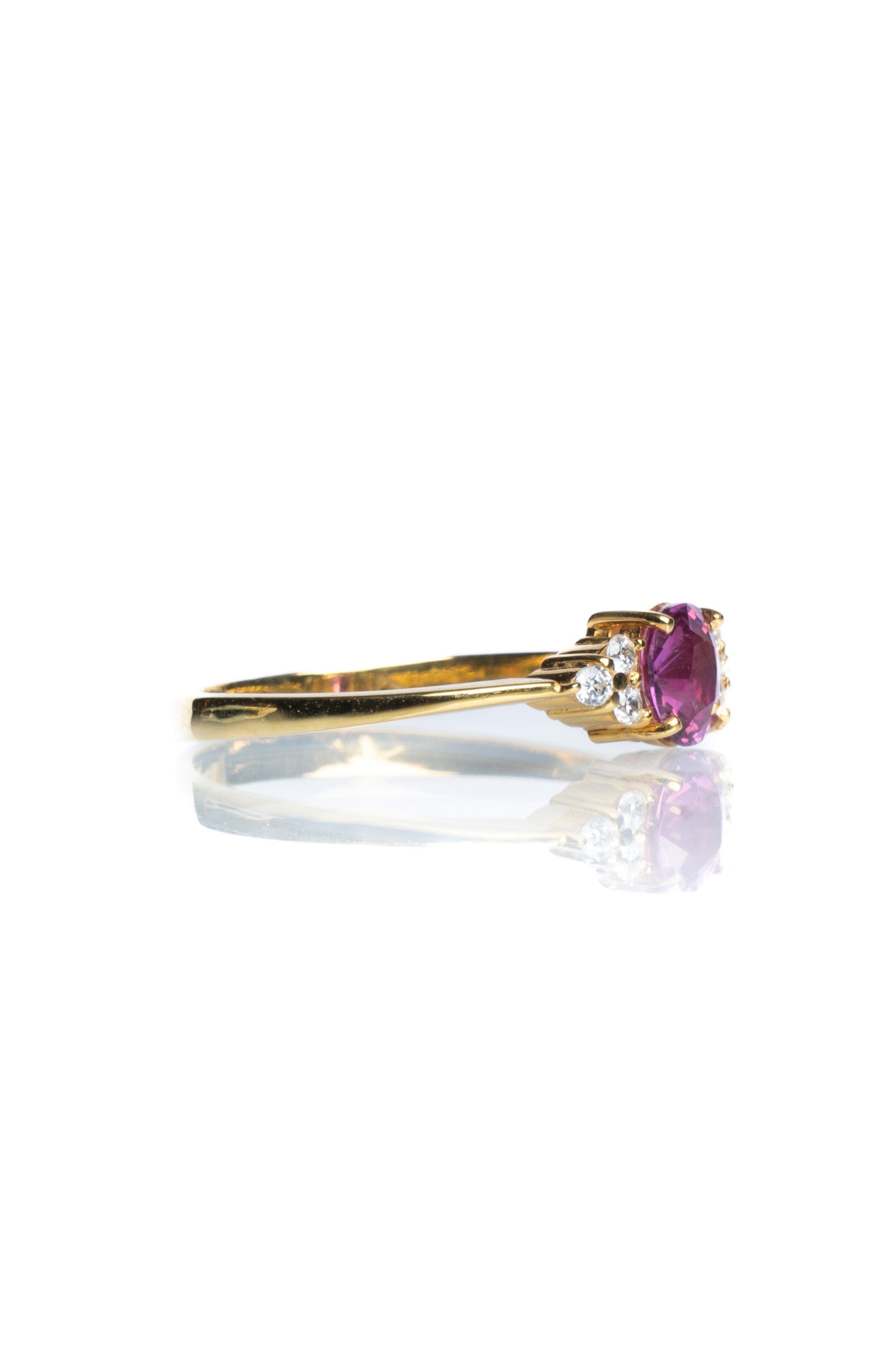 This beautifully handcrafted 14k yellow gold Juliet ring features an ethically sourced, radiant Sri Lankan natural pink sapphire at its centre, with sparkling accent zircons. The warm gold tone enhancing the soft pink hue and fine craftsmanship makes it a perfect piece for everyday luxury or special occasions. A refined, minimal and luxury choice to gift her.